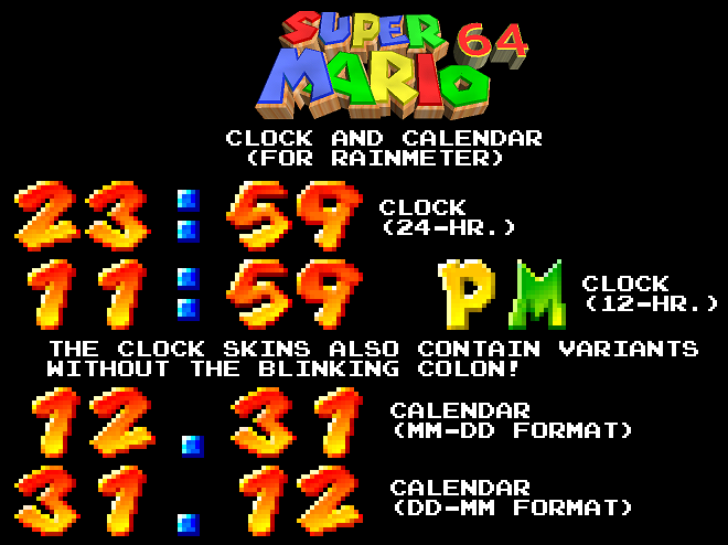 (For Rainmeter) SM64 Clock and Calendar